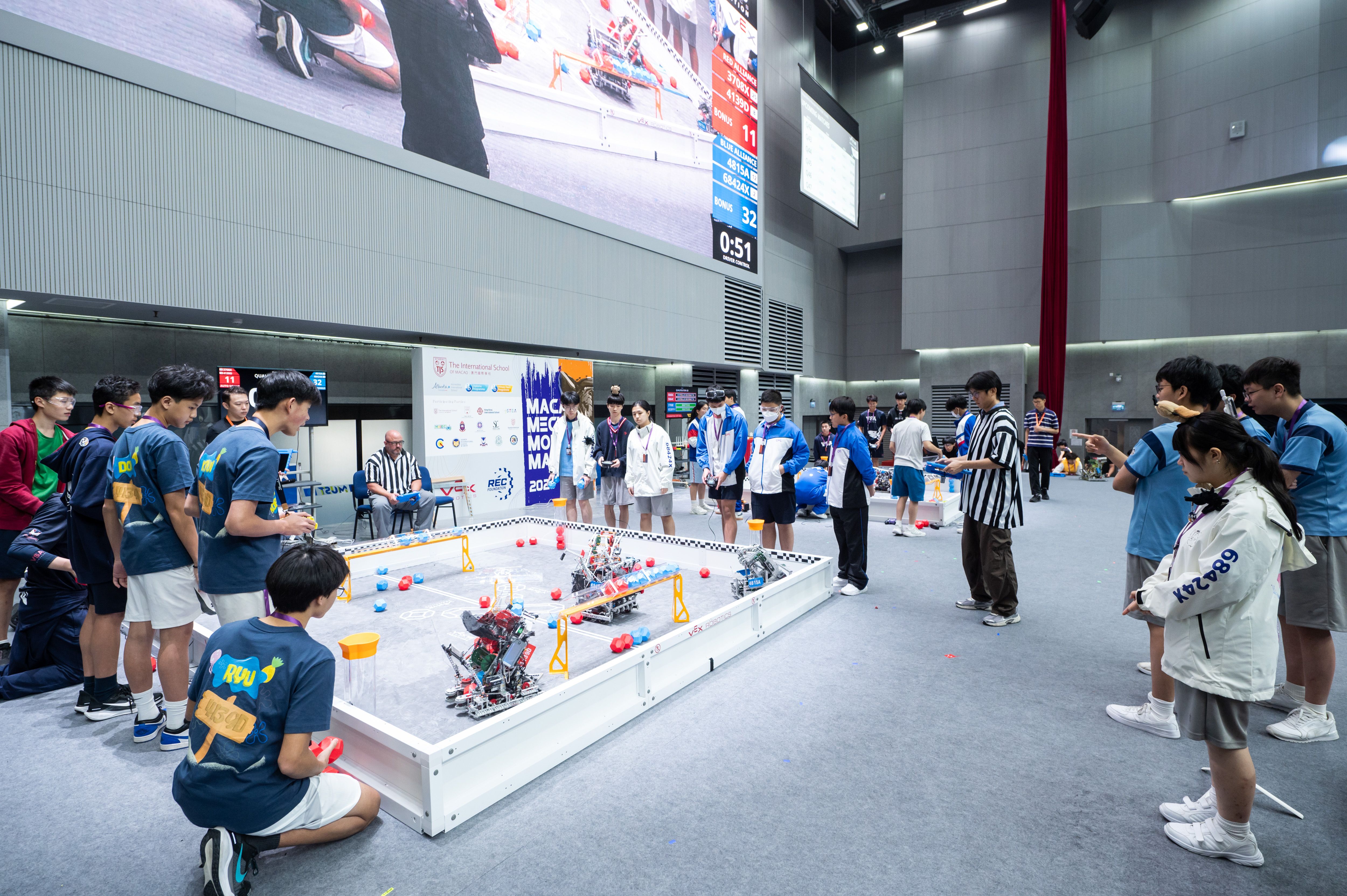 The International School of Macao (TIS) proudly hosted its third annual TIS VEX Robotics Competition, titled  "Macau Mecha Monster Mash" on Friday, October 31st, 2025. This event brought together fourteen schools from across Asia, showcasing the talents of over 400 students, in an exciting large-scale VEX competition.