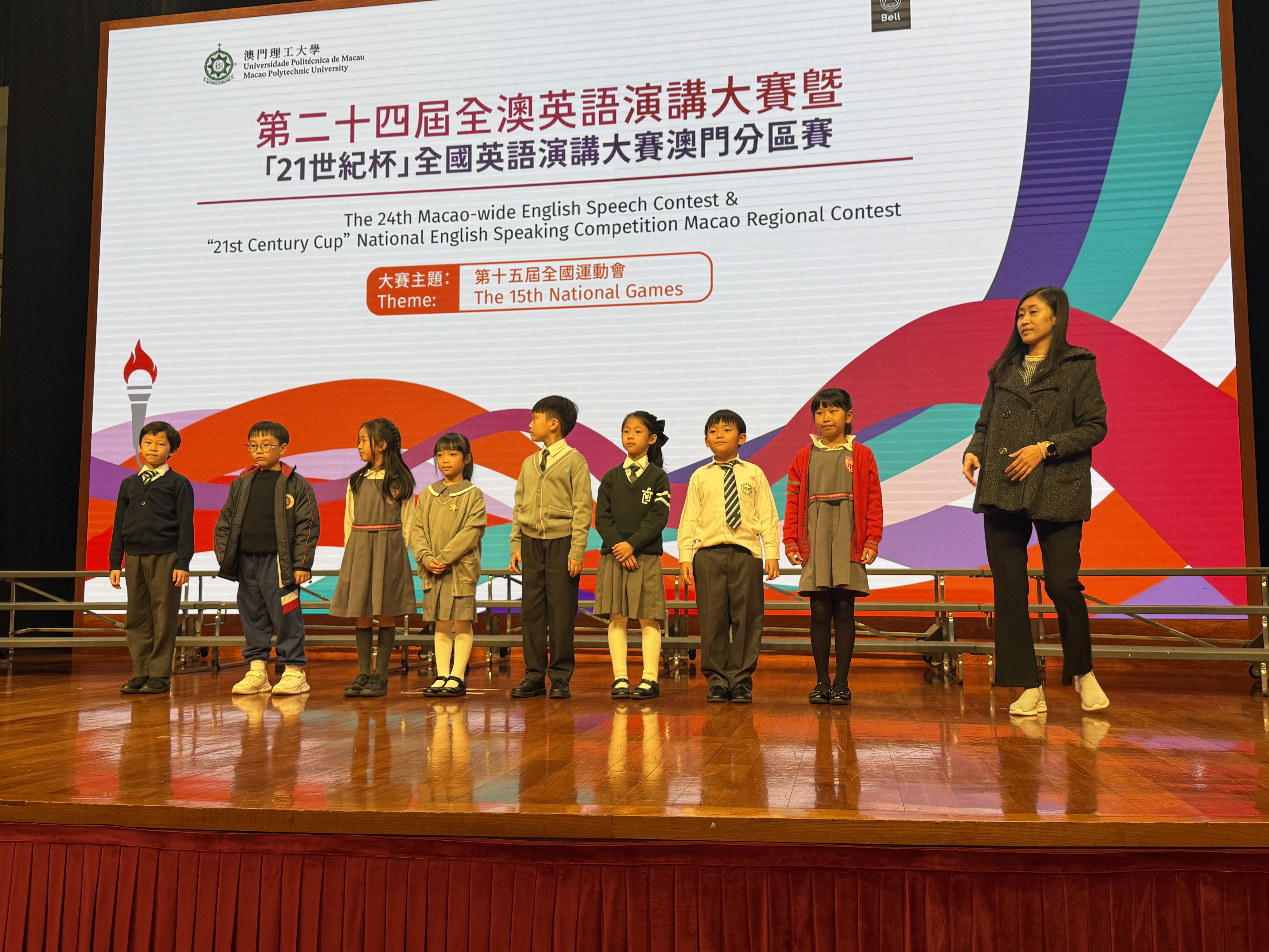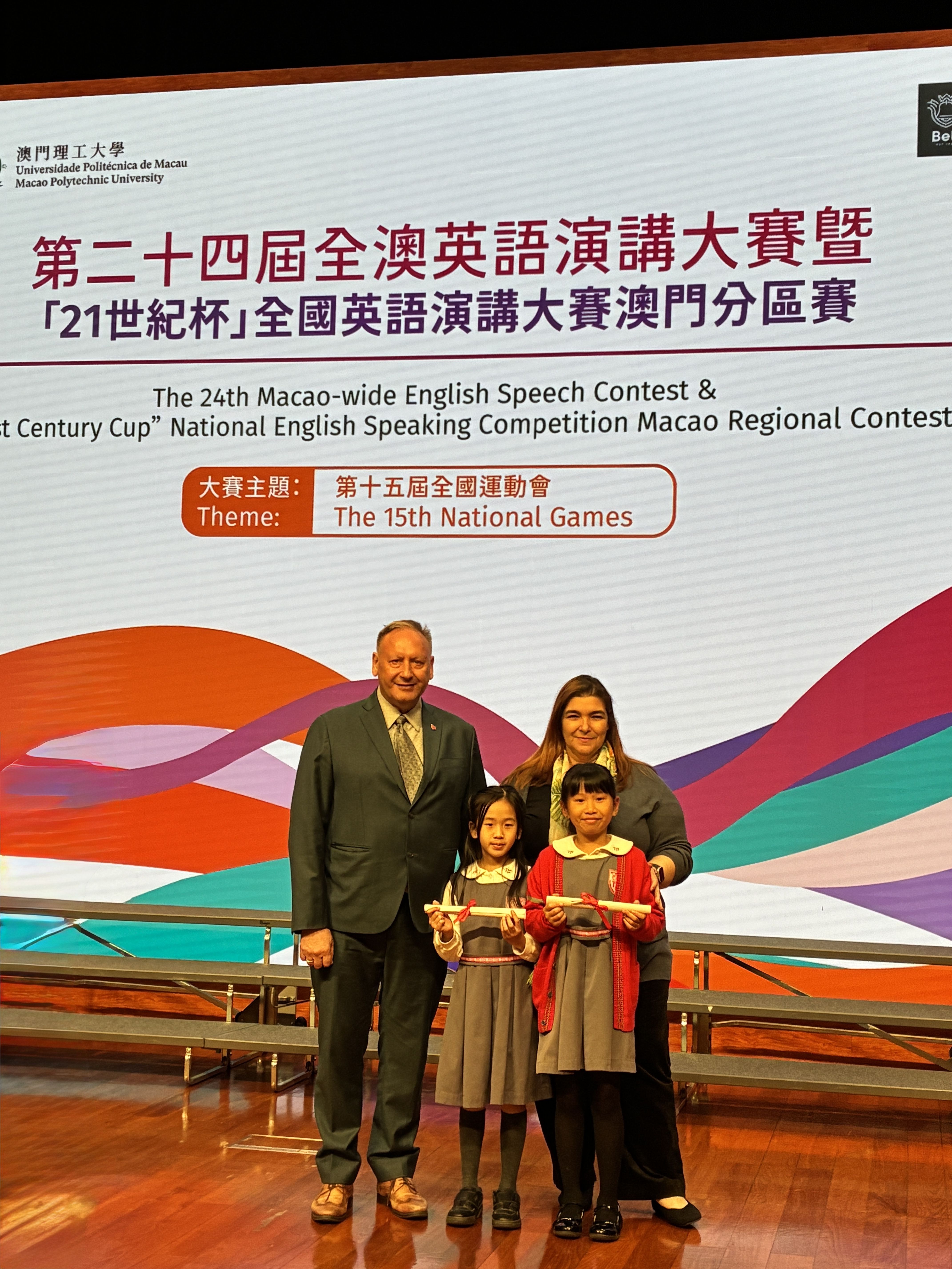 On November 19, our Primary Writing & Speech Club students proudly represented the school at the Macao‑wide English Speech Contest & “21st Century Cup” National English Speaking Competition (Macao Regional Contest), held at Universidade Politécnica de Macau. This year’s theme was “The 15th National Games.”